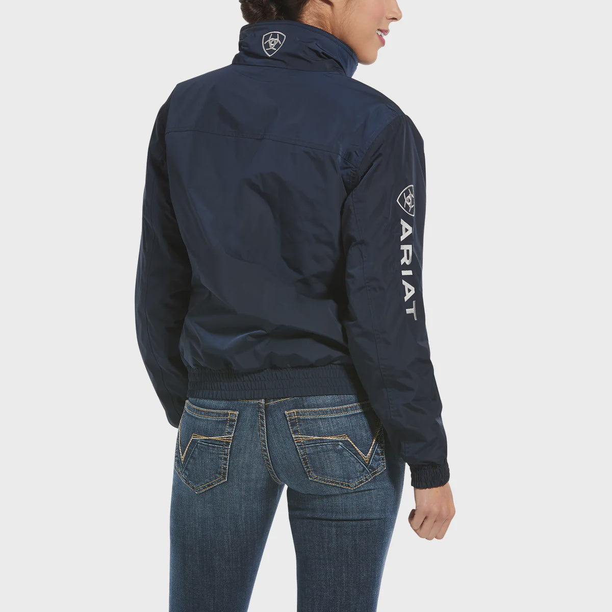 The Ariat Stable Jacket is a water and wind resistant jacket with a lightweight polyfill quilted lining. Featuring a mock collar, fitted hem and logo embroidery as well as zippered entry for team embroidery.