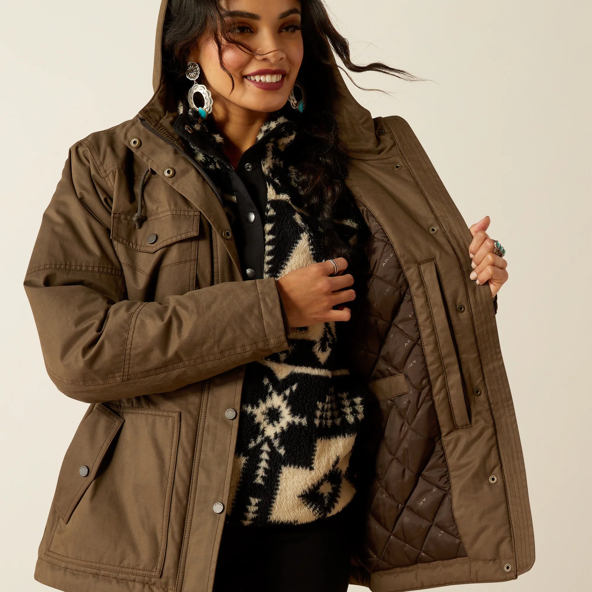 Whatever the weather, our ranch-ready Grizzly Parka can handle it. Lightweight insulation keeps you toasty through winter's worst; rugged performance stretch fabric keeps you moving in comfort. Cinch in the drawstring waist for a cozy, flattering fit.