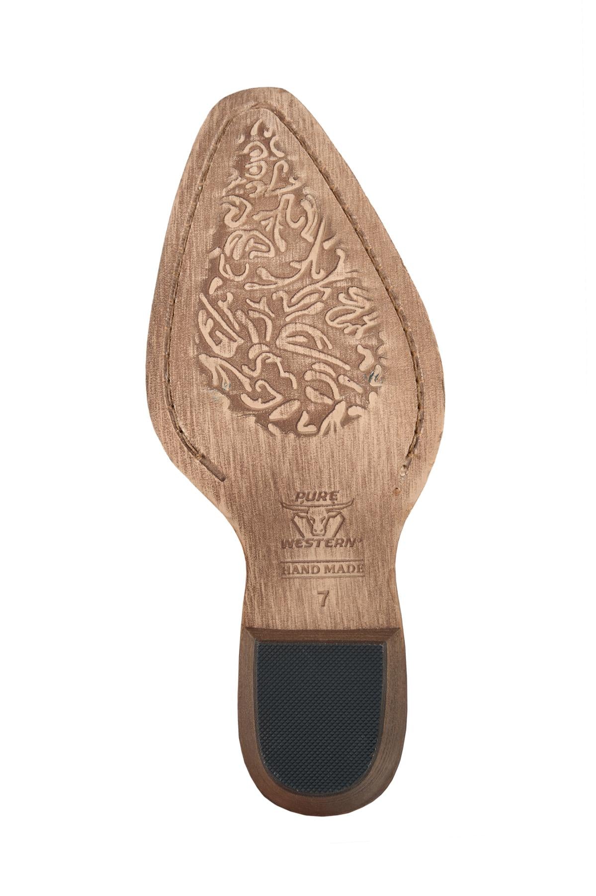 Full grain leather upper, leather/synthetic moisture wicking lining, snip toe, cut out side design detail for easy slip-on entry, non-removable comfort foam innersole with hair on trim detail, rubber outsole and stacked 6cm (2 3/8”) western heel.