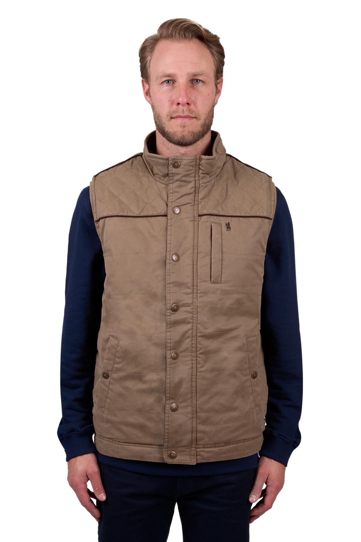 Thomas Cook Mens Stan Faux Oilskin Vest in Camel