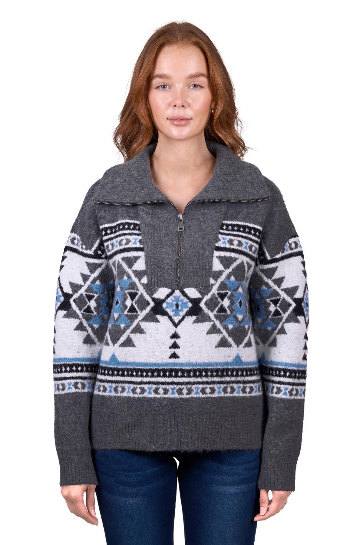 Fully fashion knitted 1/4 zip neck jumper, rib trim on collar, sleeve cuffs and hem edge, Wrangler® logo pip on side seam.