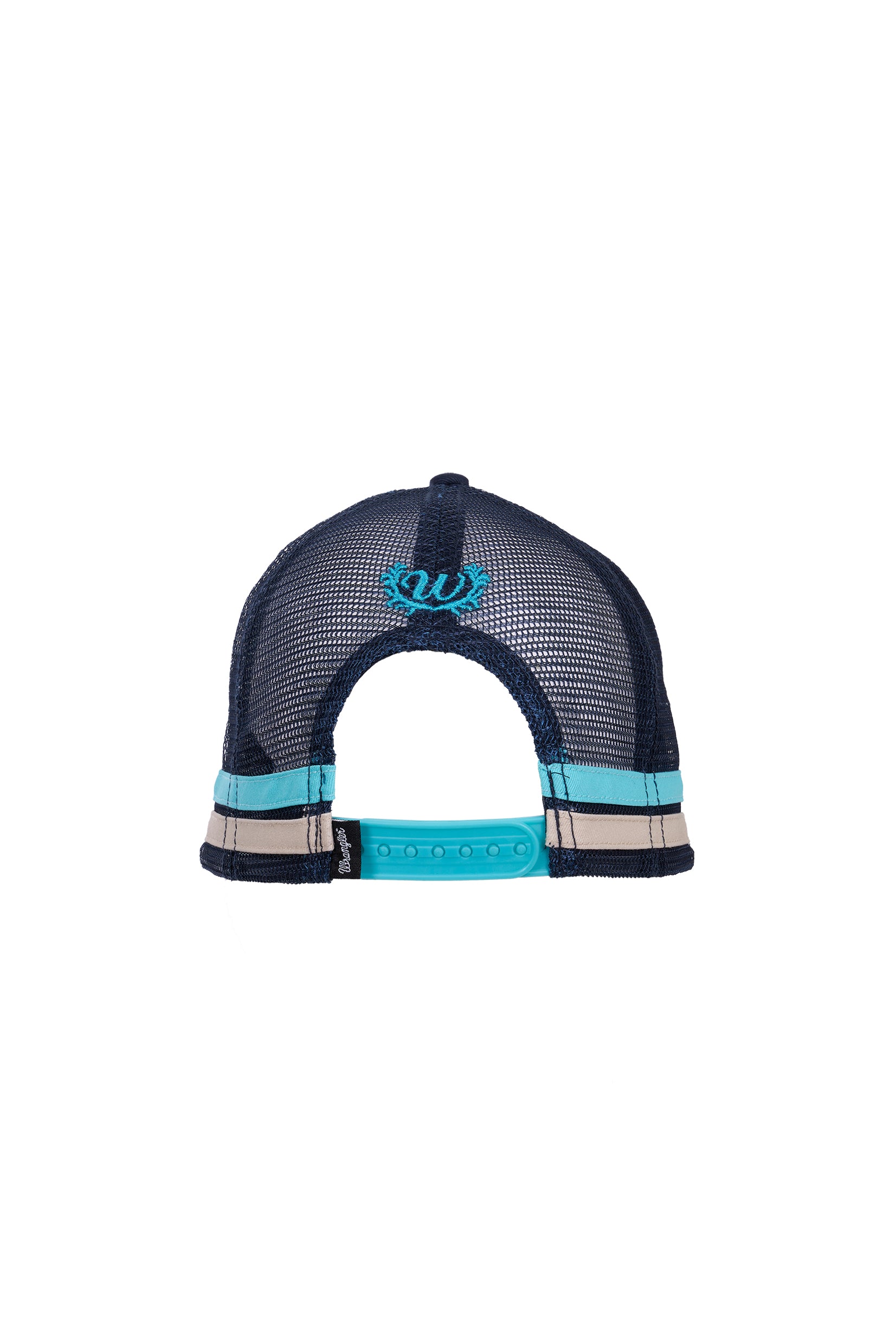 Wrangler womens high profile 5 panel trucker cap, contrast peak, contrast sandwich peak, side panel taping.
